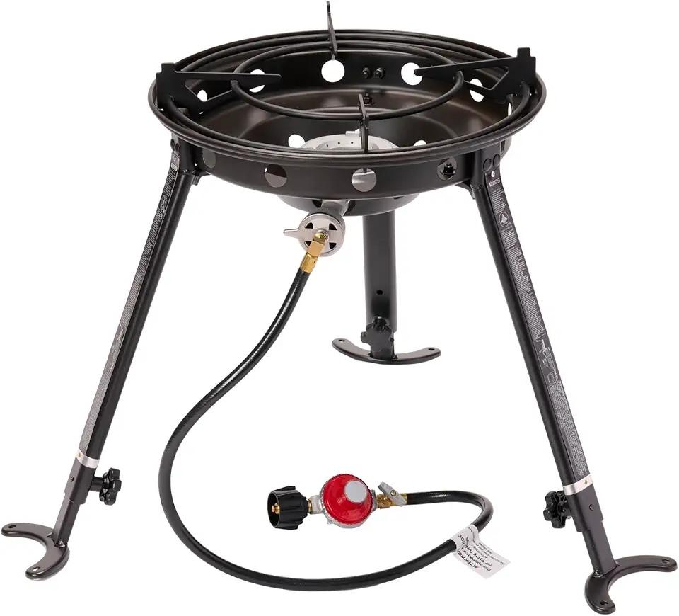 Eastman Outdoors Portable Kahuna Burner with XL pot and wok brackets. Features adjustable and removable legs for versatile outdoor cooking. Powerful, stable, and easy to transport – ideal for backyard or camping use.