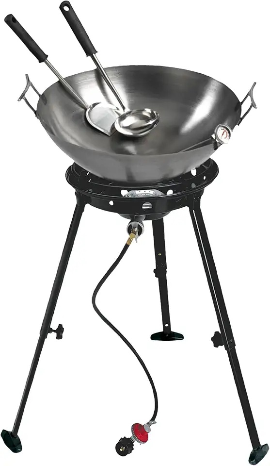 The 22 Inch Carbon Steel Wok Kit is excellent quality. Paired with the Big Kahuna burner, it delivers that perfect high-heat sear and wok hei flavor. The whole setup is sturdy and easy to use for family meals outdoors.